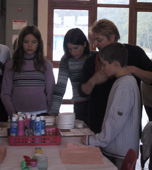 de Brossac explique les rudiments de la peinture sur plâtre.